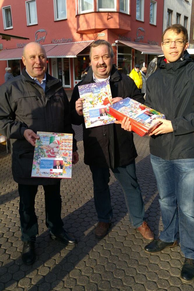 Für freudige Gesichter bei den Kindern, die am ersten Adventssamstag mit Eltern oder Großeltern in der Dorstener Innenstadt unterwegs waren, sorgte der örtliche Bundestagsabgeordnete Michael Gerdes (SPD). Gemeinsam mit Genossinnen und Genossen aus dem SPD-Stadtverband, dem SPD-Ortsverein Dorsten-Altstadt (Altstadt, Feldmark, Hardt, Östrich) und der Jusos, wünschte Gerdes den Dorstenerinnen und Dorstenern eine schöne Weihnachtszeit und verschenkte Adventskalender.