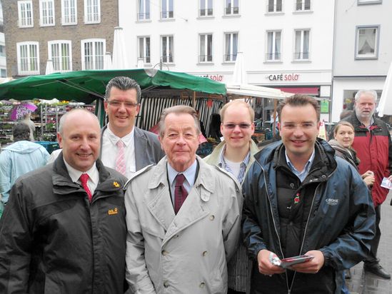 Auf dem Bild von Links: Michael Gerdes (unser MdB), Michael Baune (OV-Vorsitzender Hervest), Franz Müntefering (MdB), Julian Fragemann (OV-Vorsitzender Altstadt) und Michael Hübner unser Landtagskandidat.